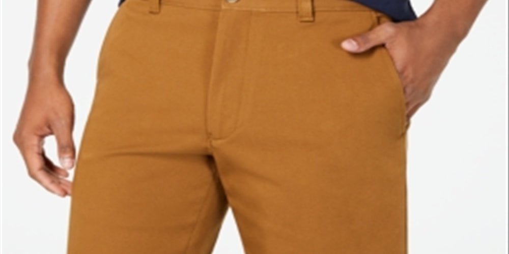 Club Room Men's Flat Front Performance Chinos Shorts Brown Size 38