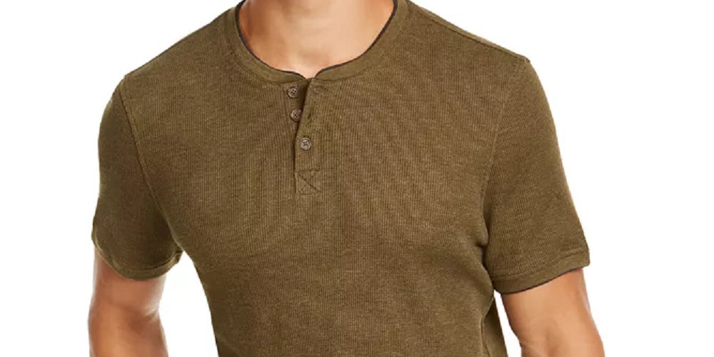 Regular fit|Henley neckline; three-button closure|Waffle-knit design; pieced contrast tipping at neckline and cuffs|Cotton/polyester|Machine washable