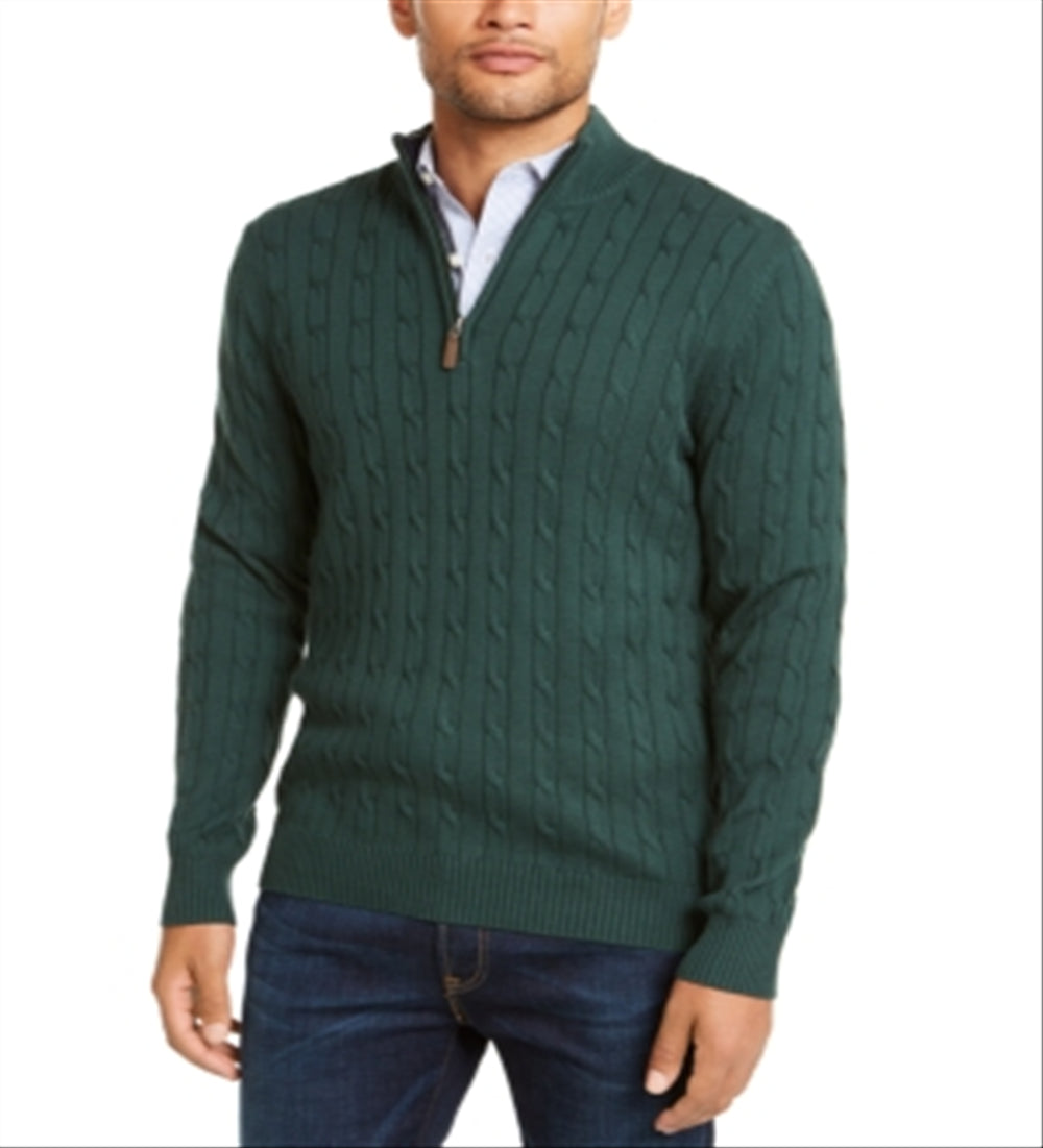 Club Room Men's Pima Cable Quarter Zip Sweater Green Size Large