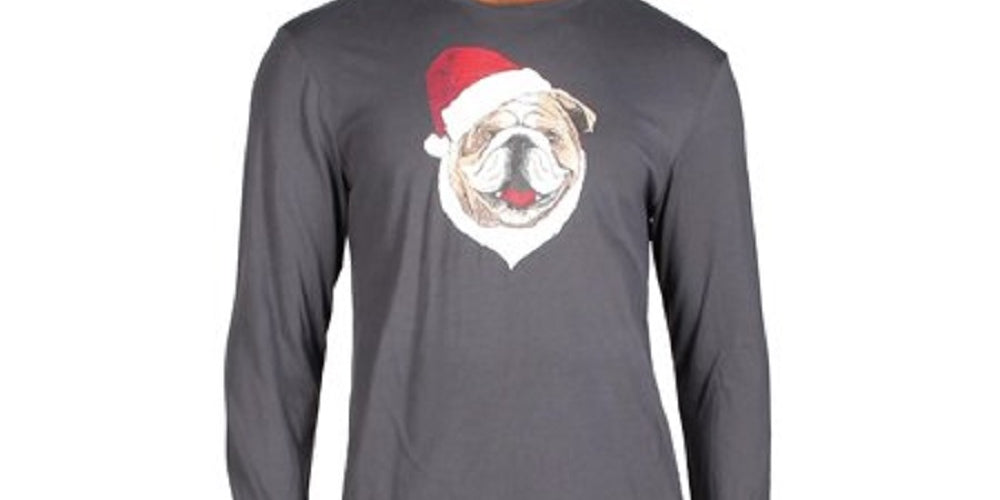 Club Room Men's Santa Bulldog Holiday Party Christmas Top Gray Size Medium