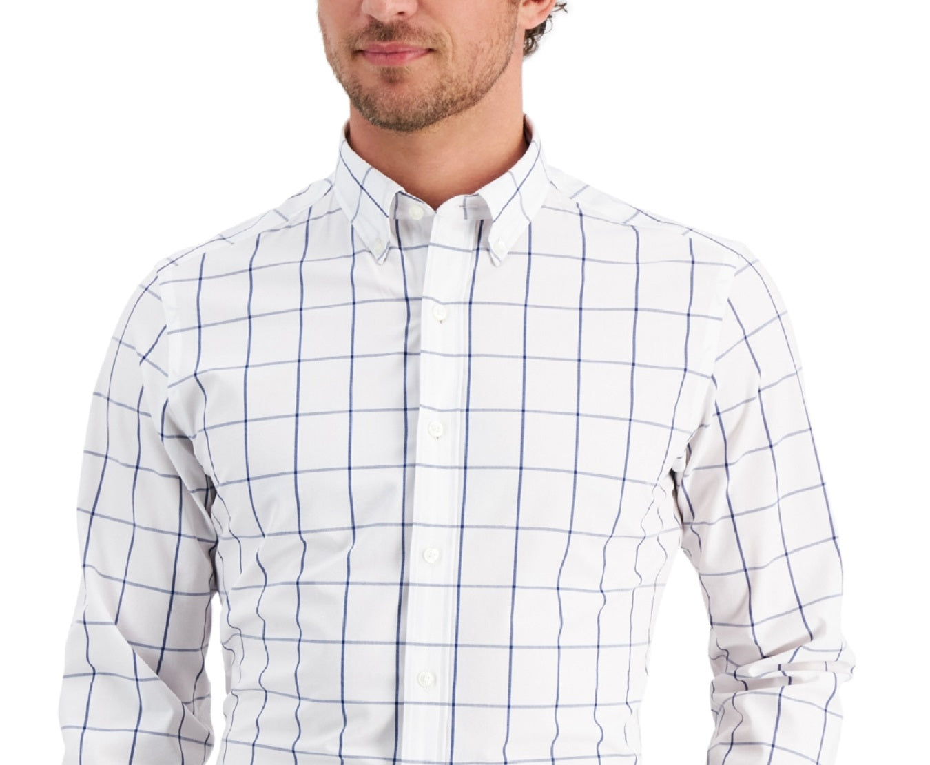 Cut from four-way stretch fabric that moves with you every step of the way| Club Room's dynamic slim-fit windowpane dress shirt can be worn tucked or untucked to help you nail the vibe at your next event