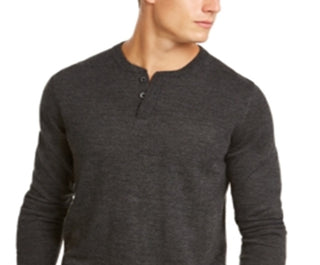 Club Room Men's Henley Merino Wool Blend Sweater Gray Size XXX-Large