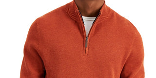 Club Room Men's Quarter Zip Textured Cotton Sweater Orange Size Large