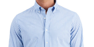 Club Room Men's Slim Fit 4 Way Stretch Stripe Dress Shirt Blue Size Medium