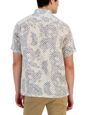 Club Room Men's Assertta Leaf Print Linen Short Sleeve Shirt White Size Medium