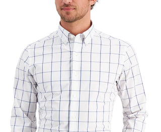 Club Room Men's Slim Fit 4 Way Stretch Gingham Dress Shirt Blue Size Small