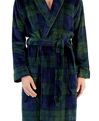 Club Room Men's Plaid Plush Flannel Robe Blue Size X-Large