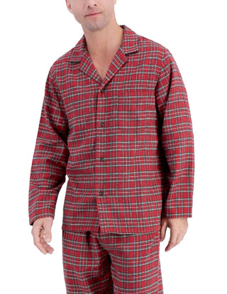 Club Room Men's Heathered Solid Flannel Pajama Set Red Size Small