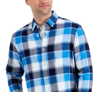 Club Room Men's Regular Fit Plaid Flannel Shirt Blue Size Large