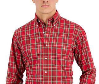Club Room Men's Regula Fit Brushed Plaid Shirt Brown Size X-Large