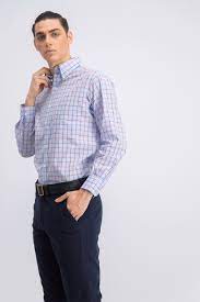 Club Room Men's Regular Fit Stretch Twill Multi Tattersall Dress Shirt Blue Size 34X35