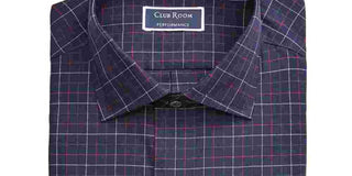 Club Room Men's Navy Check Collared Classic Fit Wrinkle Resistant Dress Shirt Blue Size 17.5X32-33