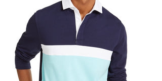 Club Room Men's Chest Stripe Long Sleeve Polo Shirt Blue Size Small