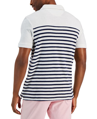 Club Room Men's Slim Reverse Terry Stripe Print Polo T-Shirt White Size Medium