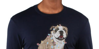 Club Room Men's Christmas Bulldog Graphic Holiday T-Shirt Blue Size Small