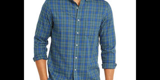 Club Room Men's Regular-Fit Performance Stretch Plaid Shirt Blue Size Size Medium