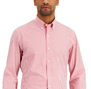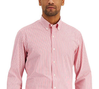 Club Room Men's Slim Fit 4 Way Stretch Stripe Dress Shirt Red Size Large
