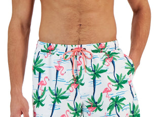 Club Room Men's Flamingo Island Print Swim Shorts White Size Medium