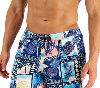 Club Room Men's Tropical Vintage Collage 7 Swim Trunks Blue Size XX-Large