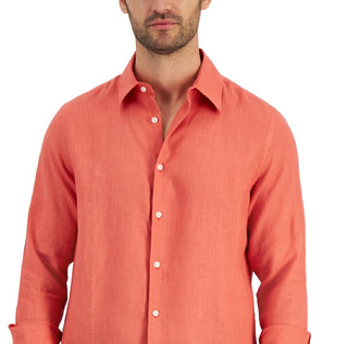 Club Room Men's Regular Fit Stripe Linen Shirt Pink