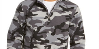 Club Room Men's Stretch Camouflage 1/4 Zip Fleece Sweatshirt Gray Size Small