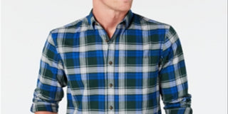 Club Room Men's Stretch Brushed Cotton Plaid Flannel Shirt Green Size Large