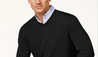 Club Room Men's Solid V-Neck Merino Wool Blend Sweater Black Size 3XLRG
