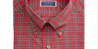 Club Room Men's Big & Tall Classic Regular Fit Wrinkle Resistant Tartan Dress Shirt Red Size 17 (37-38)