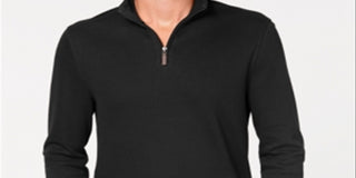 Club Room Men's Quarter Zip French Rib Pullover Sweater Black Size XL