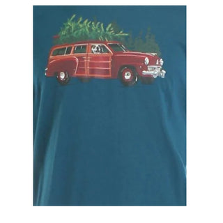 Club Room Men's Woodie Wagon Holiday Party T-Shirt Blue Size Small