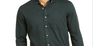 Club Room Men's Shirt Button Down Gingham Long Sleeve Green Size Small