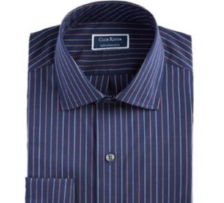Club Room Men's Classic Regular Fit Stripe Dress Shirt Blue Size 32X33