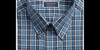 Club Room Men鈥檚 Classic/Regular Fit Stretch Plaid Button Down Collar Dress Shirts Blue Size 32-33