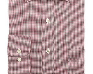 Club Room Men's Classic/Regular Fit Stretch Twill Houndstooth Plaid Dress Shirt Red Size 17.5 x 36-37"