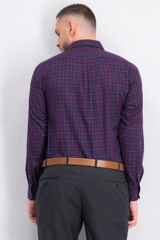 Club Room Men's Regular Fit Gingham Check Performance Dress Shirt Wine Size 34-35