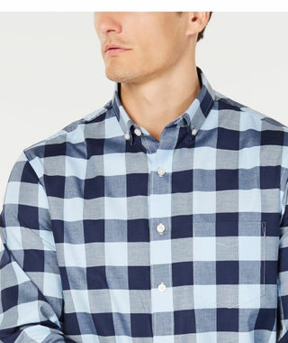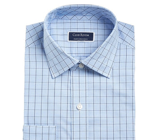 Club Room Men's Classic/Regular Fit Performance Windowpane Dress Shirt Navy Size 34-35