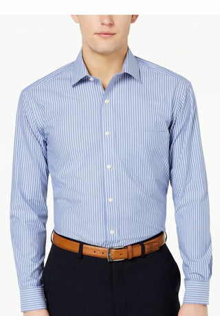 Club Room Men's Classic/Regular Fit Stripe Dress Shirt Blue Size 34-35