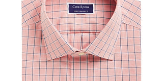 Club Room Men's Classic Regular Fit Performance Windowpane Dress Shirt Orange Size 16X34X35