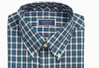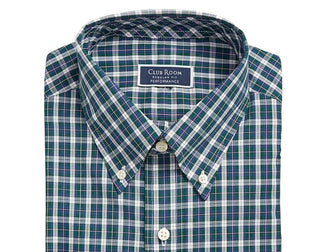 Club Room Men's Classic Fit Stretch Blackwatch Tartan Dress Shirt Navy Size 17-32-33