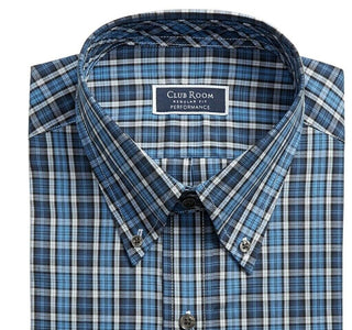 Club Room Men's Classic/Regular Fit Stretch Twill Multi Tattersall Dress Shirt Blue Size 32-33