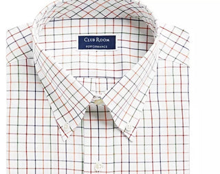 Club Room Men's Classic/Regular Fit Stretch Tattersall Dress Shirt White Size 16.5X34-35