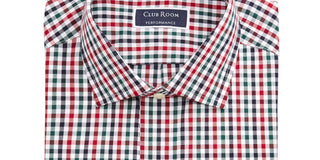 Club Room Men's Dress Shirt Green Holiday Gingham Check Red Size 17.5X32X33