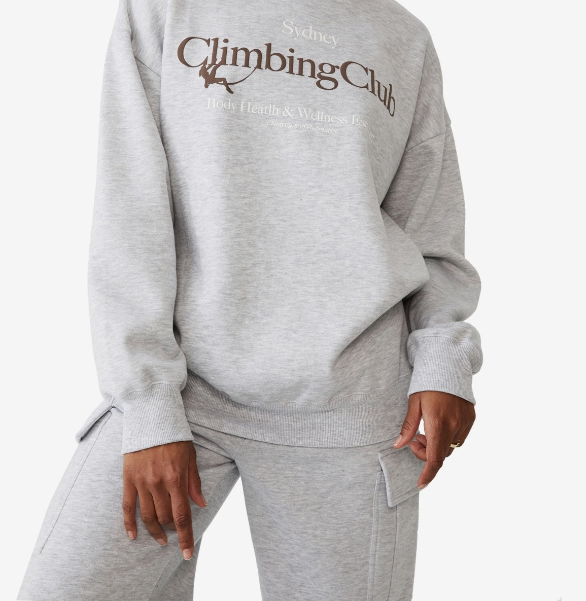 Work up a sweat or chill out in our oversized graphic crew| This long sleeve| relaxed fitting top will take you from couch to gym effortlessly