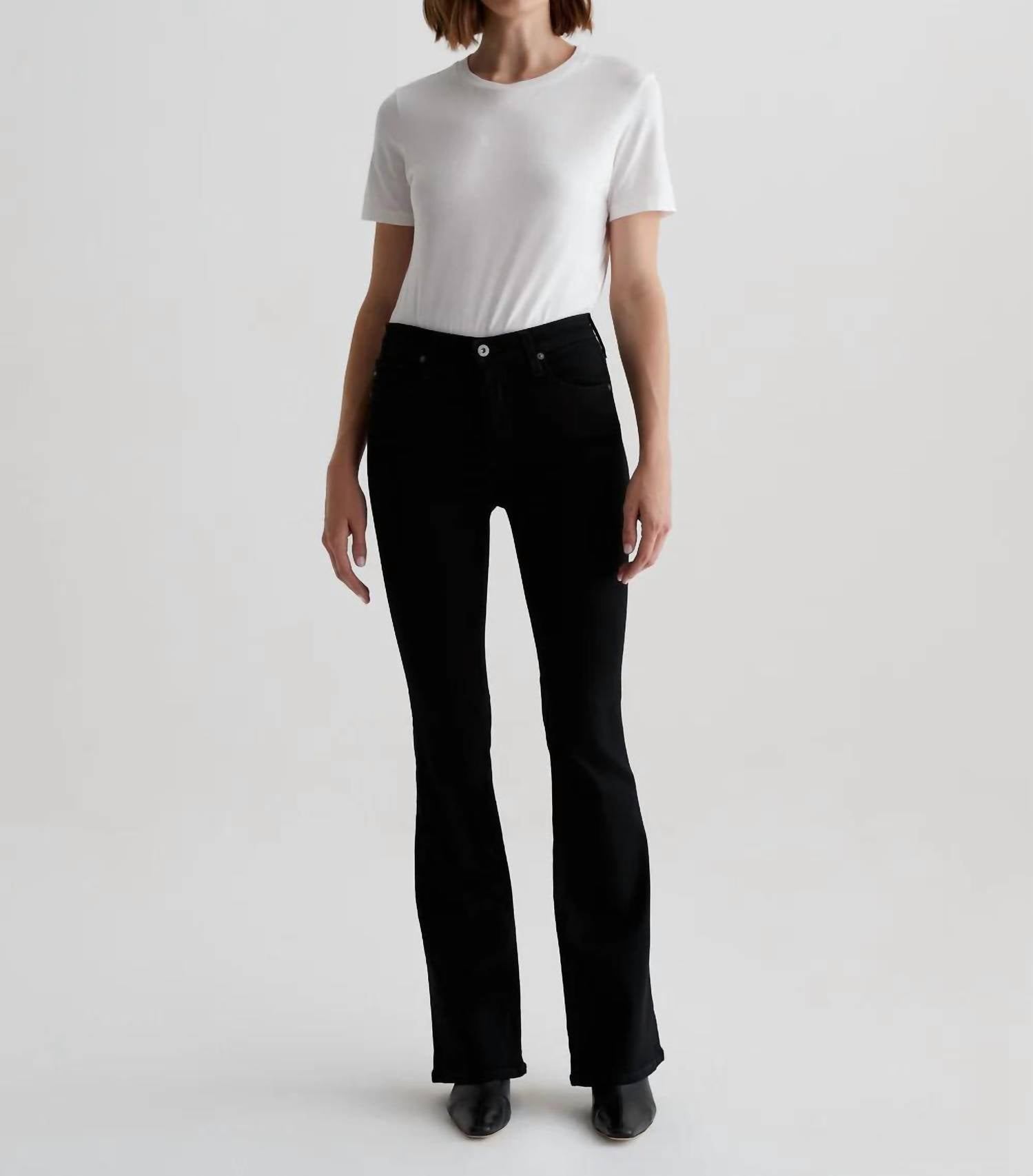 If you're looking for boot-cut, this is the jean for you. Elevate your denim collection with the Farrah Mid Rise Boot Cut Jeans by AG Jeans, a modern indigo masterpiece. These women's jeans feature a mid-rise waist, crafted from a 10 oz. Rouge Advanced Stretch Denim, composed of 98% Cotton and 2% Spandex for a comfortable slim fit through the leg, transitioning into a bootcut. With a measured front rise of 10 inches, an inseam of 32 inches, a knee opening of 14 inches, and a bottom opening of 18.5 inches, these jeans promise an impeccable fit. Closure: Button closure. Care: Machine wash and tumble dry.