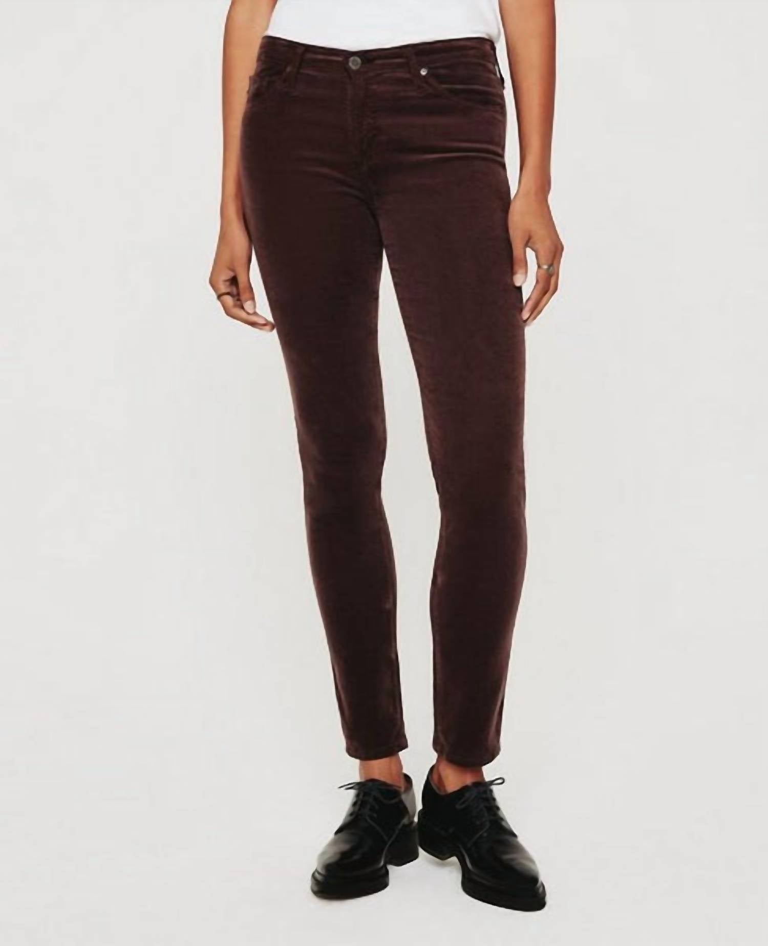 A straightleg pant that workes season after season. Dress these up with your favorite blouse or keep it casual with your go-to tee. Step into style with the Prima Corduroy Pants by AG Jeans, crafted for the modern woman in a rich oak hue. These mid-rise, cigarette pants are styled with a slim fit and tapered leg, featuring Envy Stretch Corduroy for comfort and flexibility. Made from 98% Cotton and 2% Lycra, these imported pants include practical pockets for added convenience. Dimensions include a front rise of 8.5", a knee opening of 13.5", a bottom opening of 11.5", and an inseam of 30". Model is wearing size 25. Perfect for back-to-school occasions in the fall season.