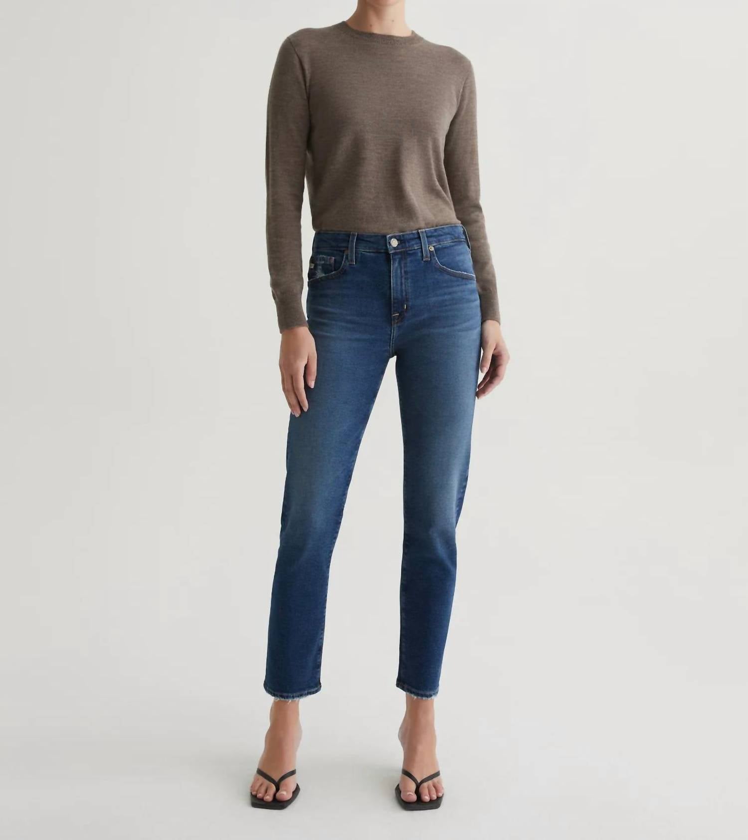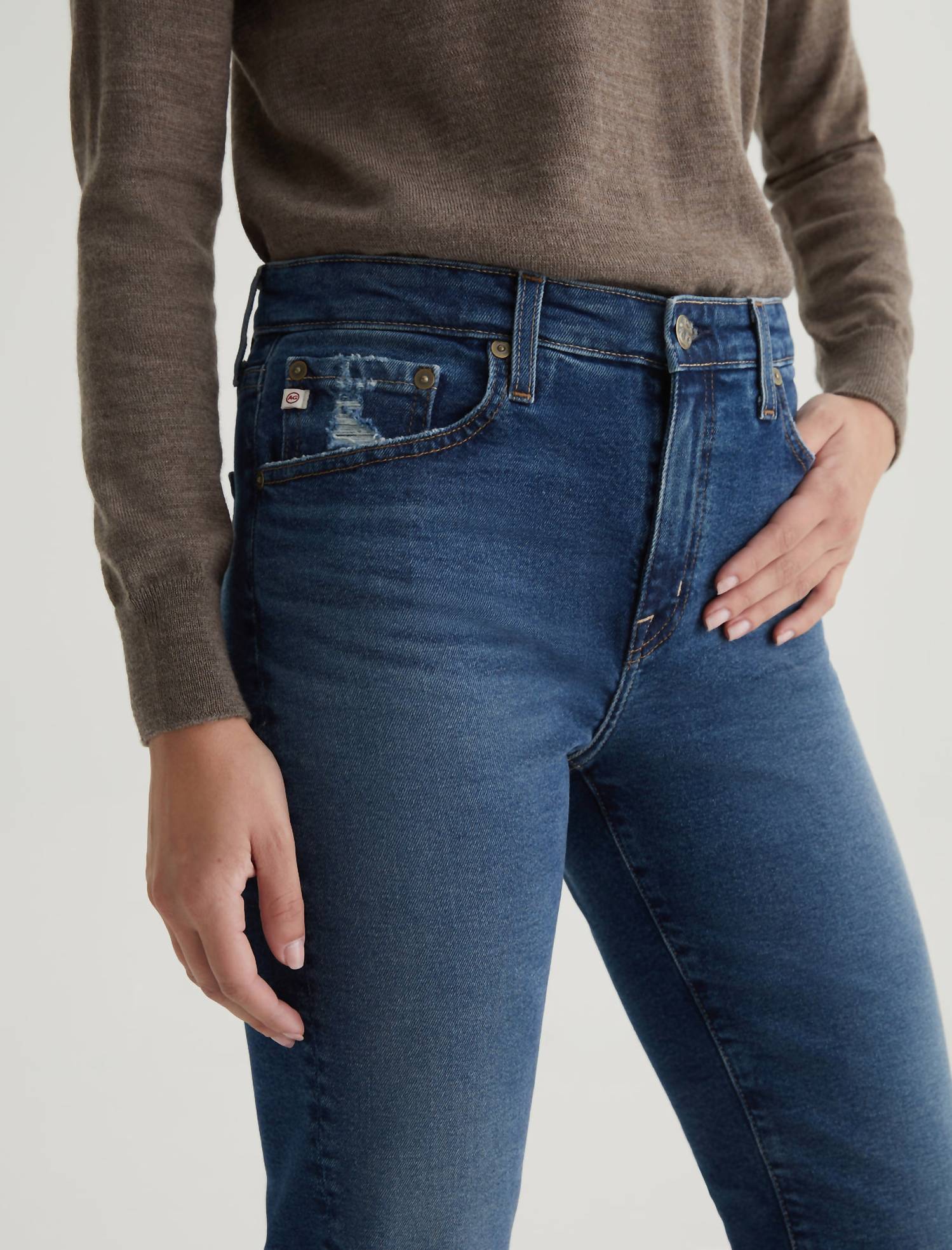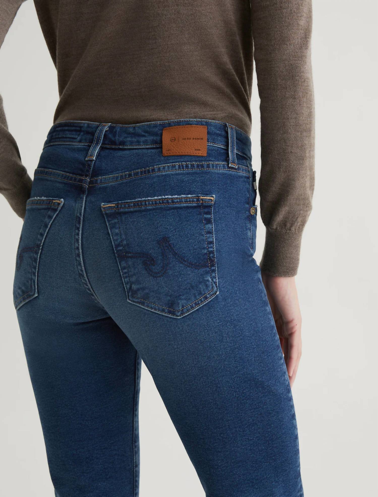 a laid-back feel while still surprisingly form-flattering. This Ex-Boyfriend Slim Jean for women features a dark blue wash with a 9-year fade and distressing at the pockets. Flattering mid-rise waist and a slouchy, relaxed fit from hip to knee. Designed in 12 oz. Classic Comfort Stretch Denim. 98% Cotton, 2% Spandex/Elastane. Model is wearing size 25. Front Rise: 10". Knee Opening: 15 1/2". Bottom Opening: 13 1/4". Inseam: 28"