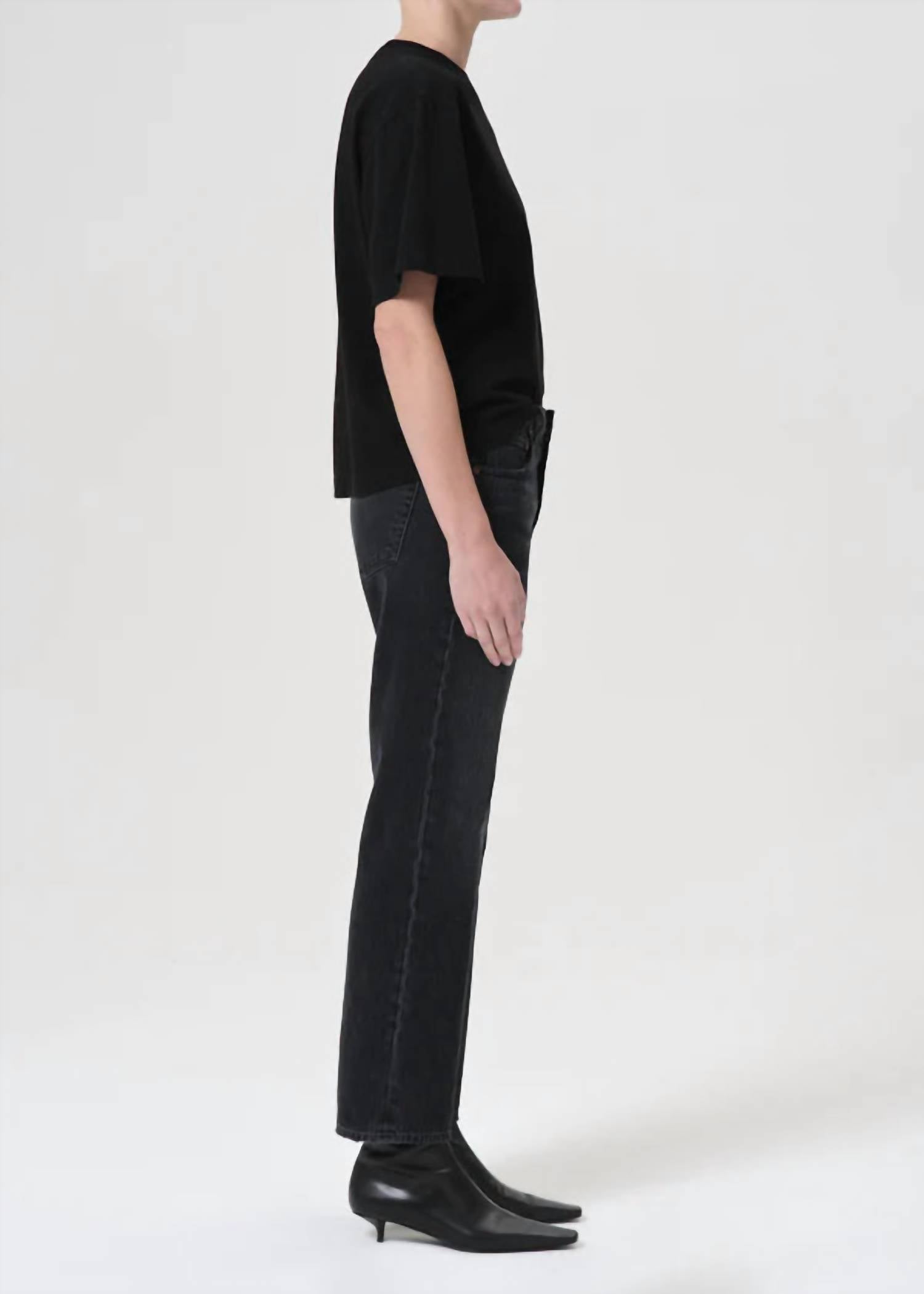This straightleg pant is both stylish and comfortable. Did we mention the fit is perfection? Introducing the Women's Valen Jean by AGOLDE in Hitch, designed to elevate your streetwear collection with its classic fit and solid pattern. These straight leg jeans feature a flattering mid-rise and an ankle-grazing 28 1/2" inseam, complemented by a 15" leg opening. Made from 100% non-stretch organic cotton sourced from Turkey, they promise a soft feel that improves with wear. Closure: Zip closure. Care: Machine wash cold inside out with like colors, tumble dry low. Model is 5'10" and wears size 27 with an 11" rise.