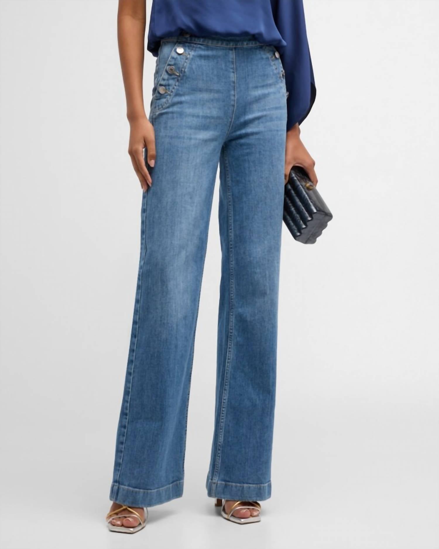 These must-have jeans are fit to perfection. These jeans feature straight legs and a mid-rise fit with a flattering 11.5-inch rise, complemented by a generous 33-inch inseam for a full-length finish. Crafted from a cotton blend with elastane for added stretch, they include side button closures and practical back patch pockets. For optimum longevity, dry clean this imported piece.