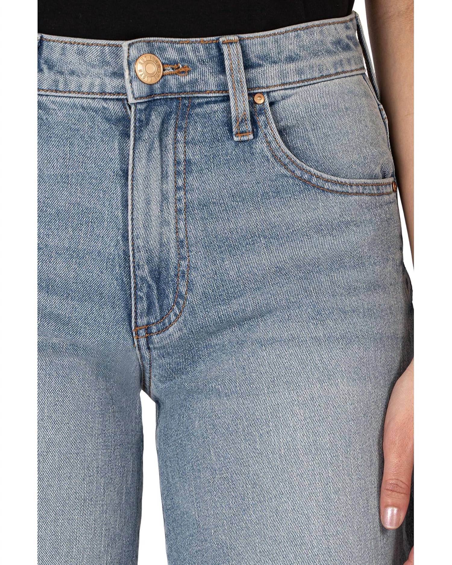 This classic straight leg jean has a perfect fit and goes with just about everything. Introducing the KUT from the Kloth Ashley High-Rise Slouchy Barrel Straight Leg Jeans, a timeless addition to your wardrobe in the Decency colorway. These versatile straight-leg jeans feature a high-rise waist with an 11" rise and a cropped 27" inseam, perfect for any casual occasion. Crafted from a 99% cotton and 1% spandex blend, they ensure comfortable stretch while maintaining their shape. Closure: Button with zip-fly. Care: Machine washable. Imported. Model is 5’7", wearing size 0 with a waist of 26" and hips of 35".