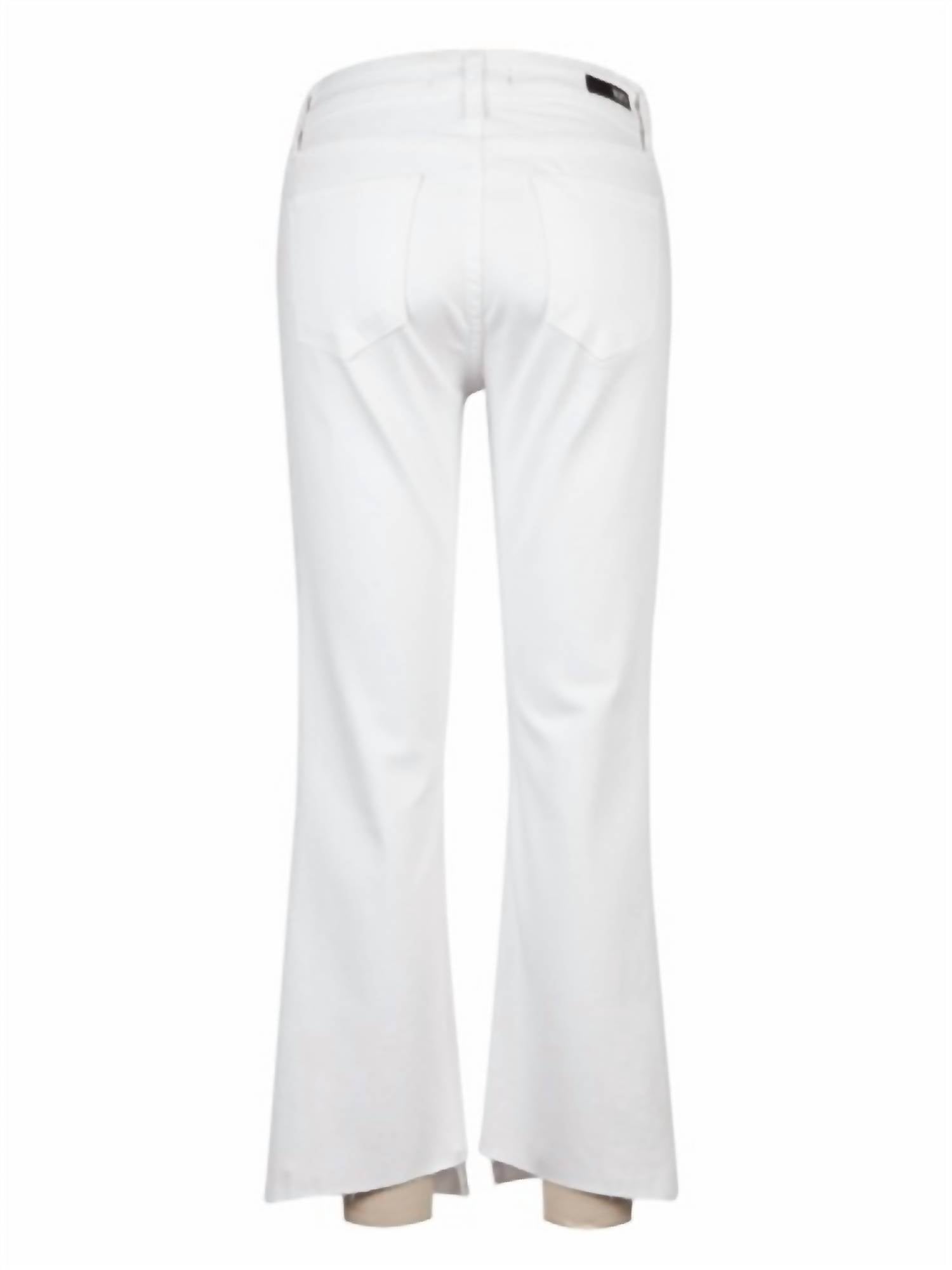 Experience the effortless style of the Kelsey High Rise Ankle Flare Step Raw Hem Jeans by KUT FROM THE KLOTH in Optic White. These jeans, crafted from a cotton blend for a comfortable stretch, feature a high rise and a slim, relaxed fit with straight leg style. Composition: 98% Cotton, 2% Spandex. Closure: Zip closure. Care: Machine wash cold, inside out to retain color, and tumble dry low or lay flat to dry.